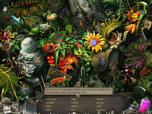 spirits, and there are grinning voodoo dolls at the bottom of the game screen.