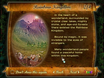 Rainbow Web was an Acer GameZone demo, with music only slightly less annoying than that of Age of Emerald. The Rainbow Kingdom is a place full of scenic beauty, hidden from the eyes of ordinary mortals. Jealous of its inhabitant's happy smiles, an evil wizard called Spider spins a web to cast it into shadows, but a kindly wizard opens a portal to this world so that you, yes YOU, may save the Magic Kingdom by knocking lettered beads off a spiderweb. The story, as told on a scroll you happen to find in the park, ends on: "So, go forth, brave savior." I shit you not.