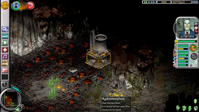 As Day 1 progresses, lay out more warehouses in the space Venus clears, so the hydromorphus doesn't grow back. When money permits, buy a chicken restaurant and ten units of chicken, because this will fill up both food and fun needs, and Charles soon mutinies if he doesn't get his fun. Around Day 2, Hour 0, the colonists's shifts will be ending. Have Charles and Venus eat chicken or just socialize, and send them back. Barbara will be heading for the cash machine. She is on bad terms with both other colonists, so don't let her talk to either of them.