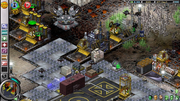 The colonists will now have to fend for themselves while the commandos take on the hyracsus and gorilloid, aided by a trail of lights that will be destroyed almost as soon as they are put down. To keep the nasties occupied, plant a small bio dome before them, which will distract them from following the trail of lights leading to the bridge; to stop them moving towards the bridge altogether, delete a few lights in the trail to create a band of darkness and put more behind the nasties to make them turn back. The commandos need light to aim but, once locked on, will continue firing in darkness, while a hyracsus with no light to attract it will stay in one spot. Annoyingly, though, the commandos will pass up the big monsters to shoot at slugs, which is why the player has to keep a constant eye on them. Things like hovermines and cluster bombs won't work, as they are destroyed from a distance. Once the destructive monsters are gone, the whole planet surface can be lit up (there are two volcanic vents to put lava plants on) and, after a bit of colonist training, androids can be used to weed the metaflaxus spreading from the top right corner (don't put the weeding posts where the burnflies are, they will destroy them). The harmless slugs can be eradicated by the commandos (tiresome, as they constantly have to be directed to where the slugs are) or by automatic lasers dropped down all over the landscape (Greg can mine argon gas to prime them for free) and sold as soon as the last slug is gone. After that, the mission is purely a matter of landscaping and watching the ant farm; if you want to green the whole surface, put down a number of bio labs (have androids man them) and don't start building a golf course until everything is covered in grass. Be sure to store 40 units of iridium for the third mission, which has only one warehouse.