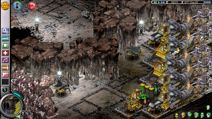 To recap from the campaign's readme file: there are three missions. The first is to mine a planet dry in four weeks, the second is to make a huge, bare planet into a tourist resort and the third is to survive on a piddly little planet full of lava. Only the first mission has a deadline, and the planet it takes place on is so rich in resources that not only is it impossible to mine them all in four weeks, but they actually get in the way of mining. A number of things are important: mining the iron and iridium first; getting as many warehouses laid out as possible; converting all mined and harvested goods to iridium with the target of taking up to 280 units of iridium to the next mission; and efficient timing, especially during the first four days. In fact, if in the first four days it turns out that one character has been sneakily slacking off rather than building androids or mining titanium, it may be better to restart the mission.