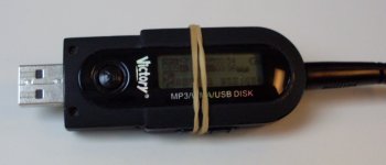 Fifthly and most importantly: this player doesn't need special scrambling bloatware to upload and play music files. I can put any files on the stick that I want, and it will play any MP3 and WAA files. (No OGG, but I can live with that.) It comes with a driver on CDROM although Windows ME and XP recognize it natively, and an earphone best ditched and replaced by something both more isolating and better for the ears, but where any type of player is concerned, the earphones are added as a courtesy, they are not what the customer is really paying for. As a sixth and seventh advantage, this player remembers what song was last played and starts again where it left off (which the HDD060 refused to do) and its many settings which I'm still exploring include when or how long the display should light up (important to conserve battery power). My priority was loading some music and playing it, so the manual has been sitting in a corner, but much information is squeezed into that tiny display, including the various options, the track number and time and the Artist/Album/Title that keeps scrolling past as a song is being played. This tiny box may have as much in the way of options as the HDD060 or any bulkier, more "player-shaped" player out there. An eighth advantage for those who need it is that this player, like the average walkman or minidisc player but quite unlike an MP3 player, can record sound. As an amusing extra, the display greets me with "Victory" and a V-sign on startup (although I'm not sure either could be trademarked, as the display suggests) and a plane dragging the word "BYE" on shutdown.
