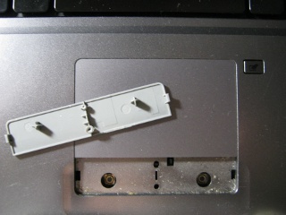 With this in mind, I websurfed for ways to either replace the touchpad (complicated, voids warranty) or prise off the bar and clean underneath it. A link I found by someone who was suffering from advanced touchpad mouse-button problems shows how to do the first and which tiny part has to be replaced (as opposed to the whole touchpad). As for removing the mouse button to clean underneath, it was generally held to be impossible. Better buy a new touchpad, or, wait, a new laptop.