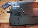 Being so tightly packed, laptops are more daunting to open than desktop machines. The screws are tiny and fiddly, and require ditto screwdrivers. (See the closeup in picture 2: click on it to see a larger image.) Fortunately, sets of mini-screwdrivers (see picture 1) are available at any shop that sells generic hardware.