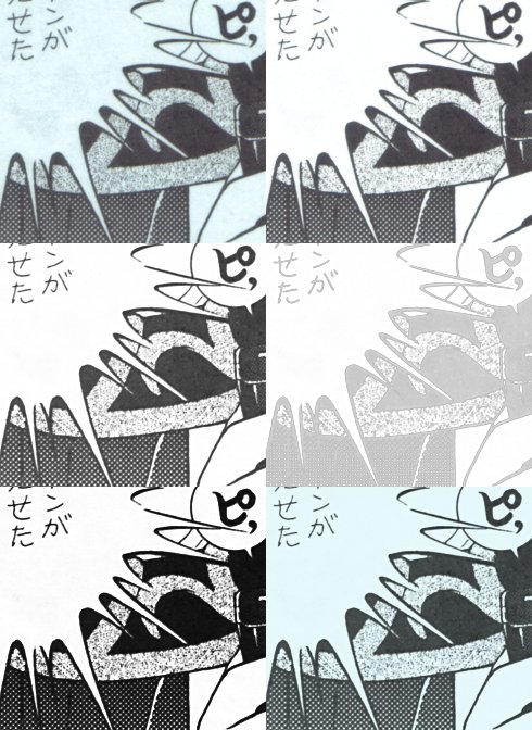 Processing a scan with coloured background, in six steps.