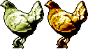 As with the statue files, I copied a number of figurine tiles to desktop to get an idea of what a figurine should look like. They are half as big as the monster/statue tiles, clearly based on the statue tiles, but even shinier, and a shade of old gold that I can almost reproduce by making tiles that look bright golden, then decreasing saturation. They are also clearly delineated, both the figurine and the shadow, although the outline is recoloured and irregular. (On my first two tiles I recreated a one-pixel black outline, a bad idea, as it makes the figurine look less shiny and golden.) In other words, I can't simply shrink the bigger tile, as for objects and object icons; it has to be edited after shrinking.