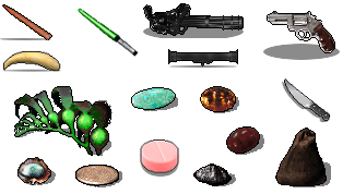That was easy! But I still see the same dagger in my inventory. That's because for every object graphic, there is an object icon graphic. The object icon tile is usually a shrunk version of the object tile, but because the dagger tile fits inside the inventory box, the dagger icon tile is simply a copy of the dagger tile. So I need to scroll down to the ICONS section and change