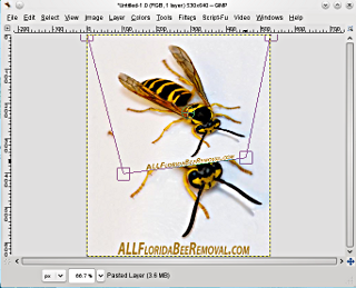 These examples also illustrate how making a graphic from a photograph isn't just resizing, shearing, and slapping on a pixel line and a shadow: the recluse spider was a grainy GIF whose colours needed brightening, and the dingo had to be supplied with missing bits of paw. The image below, used as an example for the yellow jacket, was heavily skewed with the perspective tool to get the position right.