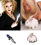 Sometimes, only a small part of the image is needed. The visibly uncomfortable bunny's position lent itself to the deranged rabid rabbit. (And it was white. A vicious man-eating rabbit has to be white. It's a Monty Python reference.) The flashing blade in the picture of the wiccan was just right for the athame.