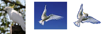 When the only suitable graphics are non-free, maybe several free, or not-quite-free, graphics can be combined into the desired image. I couldn't find the flying cockatoo I wanted, but Dreamtime had a free cockatoo on a branch, and the paradise island graphic on a site called "Vladi's Private Islands" had a flying white bird who I decided was going to lend me its wings, even though the shadows were the wrong way round (I needed a back view, not a front view) and I would have to switch them with clever editing. (Later I did find a suitable graphic, so the editing was never finished, but I'm keeping this graphic as an example of how to mix and match different images.)