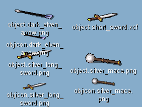For instance, to avoid picking up inferior orcish daggers, I want these to have their own graphic, "object.orcish_dagger.png". Which has the same size as the old dagger graphic, it's just been changed very slightly to look more crude. So I can simply copy the dagger line, coordinates and all, and change the filename: