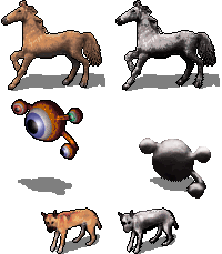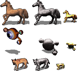 The next consideration is: will the base image be suitable? Is it small or will it retain its detail when shrunk? I try to go for the isometric look: the image must look as if viewed from above, with light coming from the left and a shadow thrown backwards and right. If the original is lit from the right, no problem, I'll flip it horizontally. If a quadruped, it should ideally stand diagonally, its rear higher than its shoulders.