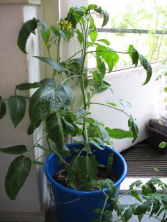 A single Bloody Butcher in a 10-litre bucket, showing its huge potato leaves