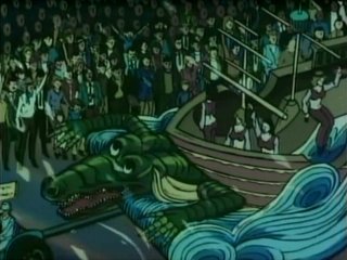 But that, it turns out, is only on the floats. The ordinary inhabitants are as humdrum as in any European country west of Austria, and the city is the usual ugly conglomeration of tower blocks and raised highways. Maybe someone who knows more about cars than I do could figure out the probable intended geographical location from the licence plate.