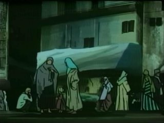 That is, until he's spotted by a woman selling roast corn cobs (by North African standards, quite a beauty; seriously, I've seen taped performances of Moroccan "dancing girls" with the same waistline) who is convinced he's her lost son.