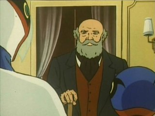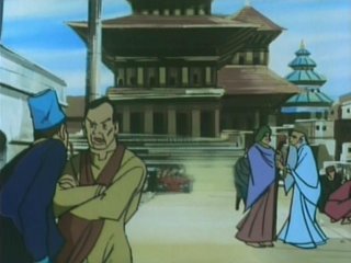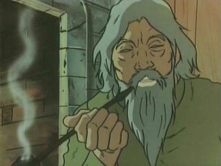 I don't know where in the series, if at all, it is stated explicitly that Jinpei was born, or rather found, in China. It's just one of those bits of background information, backed up by the visual of this old man smoking who jumps up at the sound, rather than sight, of Jinpei returning to his homeland to research his ancestry.