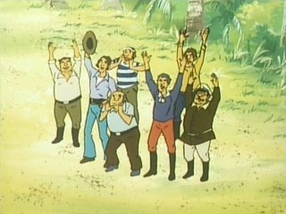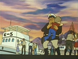 Isn't it convenient that the area around Japan (itself a set of islands, I'm aware) is dotted with islands on which to wash up after a shipwreck caused by, as usual, Galactor? It's Ryu's dad and his crew again, happily out at sea after that nasty business in ep 26.