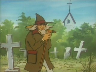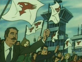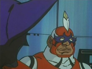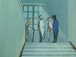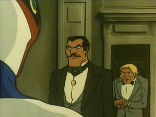 It is at any rate a country where Scary Things Happen. The team are welcomed by a nastily grinning Igor-type hunchback and led through a palace where chandeliers drop on them, suits of armour attack them etc. One would expect the president to look like Dracula, but his appearance is quite mild. (Too bad he's really a disguised Blackbird.)