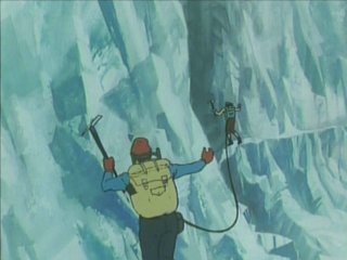 To keep people from nosing around Galactor HQ, Katze employs a Yeti mech. This is counter-effective: everyone but Mulder and Scully turn up to investigate. Well, what can I say... It benefits the local economy. Here, a hotel owner welcomes yet another tourist.