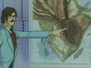 And where does this happen? Nambu pulls out his typically unhelpful and exasperating maps. The first one, where the substance was discovered, might be of Africa, which would make the island to its side Madagascar. The second one, which looks quite different but is meant to be an enlargement of the first, rather suggests India and Sri Lanka. Possibly, Galactor activity has caused such tectonic plate movement that Antarctica has moved up to almost touch both.