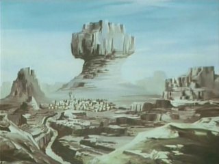 The setting: Arizona, the episode guide tells me. Clearly in the arid zone of North America, judging not so much from Nambu's useless map as from the table rocks and the appropriately themed Galactor captain, who always responds to his leader with "How!" (which in pronunciation is not very far from "hai!").