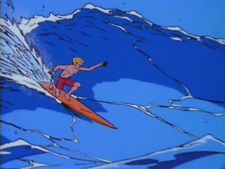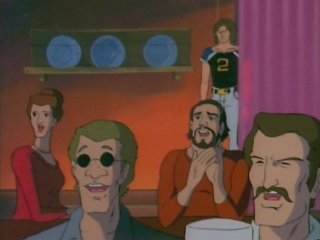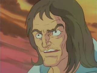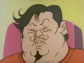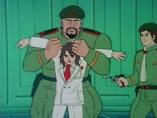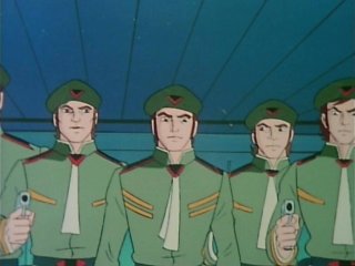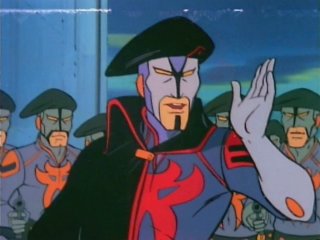Okay, can't resist (Monty Python reference coming up): "I am French, you silly k-niggets! Why do you think I speak wiz zis outrageous accent?" In fact, this captain of the Galacons (like the Blackbirds, but with sillier outfits) is not speaking with a French accent at all and his message is the usual "Die Gatchaman, bwaahaha, sayonara", but the cape and beret and wussy hand movements strongly suggest ethnic parody - to a Brit, anyway.