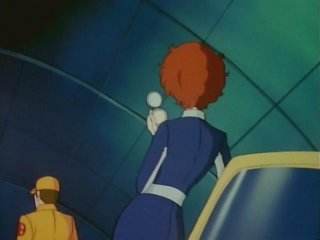 The carryovers from the first season being such a disappointment, attention naturally goes to the newcomers who - spoiler - are related: the clownesque villain Gel Sadra and the scientist and South American belle Doctor Pandora, introduced halfway through the series applying lipstick. I suppose she was meant to be a feminist statement, as she chides the team: "Can't a pretty women be a scientist?" but these days feminism has overshot its aim and every female, scientists included, is again under obligation to be a pretty woman. I've heard of Pandora's pendant in real life: a programmer from Brazil who let colleagues know how much she enjoyed being boinked by her boyfriend, and who trotted up obediently when a male colleague snapped his fingers. (Sylvia Pandora does not behave in this way in the series, in fact, she's a brilliant scientist with ninja abilities to shame the Gatchamen; but this character is so "superwoman", so obviously created to please, that she irritates me just as much.) Whether the Pandoras were from Brazil I don't know; they were at any rate from South America, which does have fair and red hair in the population due to the Spanish/Portuguese influx which itself owed these colours to Gothic and other barbarian tribes roaming southwards to be absorbed in the local population. The occasional blue eyes come from the same source, although blue eyes in Gatchaman are just a compulsory attribute of "pretty".