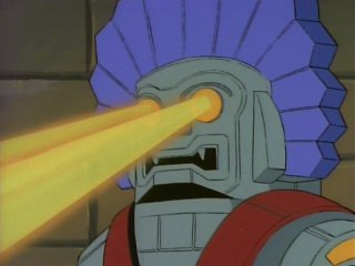 Ken and Ryu pass some Inca monuments. (That's what they are. Ryu sez so.) Inside the Galactor base, more Inca monuments are used to get rid of unwelcome visitors. That's what I like about Galactors; they're so into preserving cultural heritage!