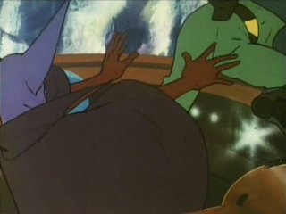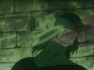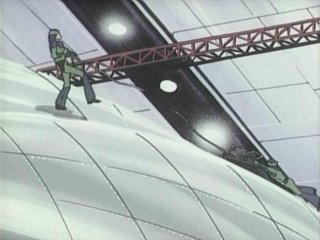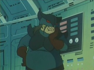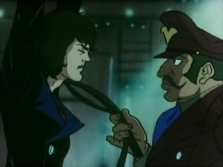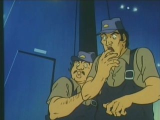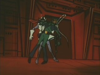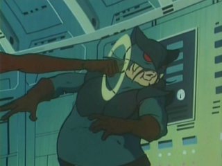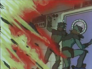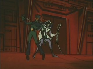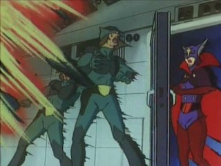 Episode "Set up a trap for Crescent Base": what this poor fool said I have no idea. His companion, smug at having escaped punishment, gets a taste of the fist. (And Katze hits hard - either that or goons have no sense of balance.)