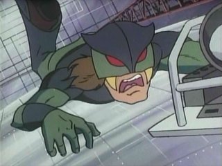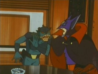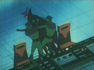 In the episode "The bracelet is exposed", where Katze uses a ray to detransmute the Birdstyled ninjas, he imperiously tosses out the goon driver after a high leap into a gunner vehicle to avoid the Birdrang. "If you want something done properly, you've got to do it yourself" is what he might have been muttering in the last picture.