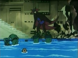 When one is an ordinary green goon serving that glorious organization called Galactor, one's life expectancy may become extraordinarily short. So short, in fact, that one needn't worry about a dental plan, even though having one's teeth kicked in is a certainty. It is not one's enemies one has to worry about most, however; any seasoned Galactor knows that the greatest danger comes from one's employer.