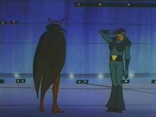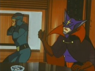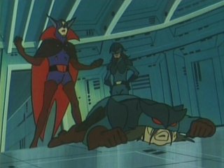 A couple of over-forward Galactors in civvies are saved by the fact that their leader is too concerned with the tape they recovered to waste time shooting them when they dare to ask for a reward. Once safely out of hearing, one of them comments on the lack of incentive.
