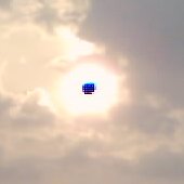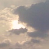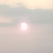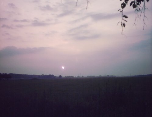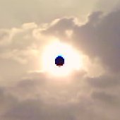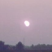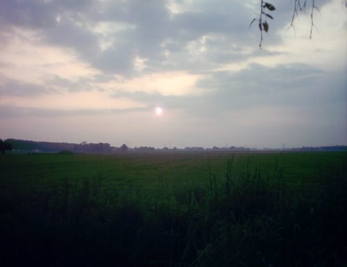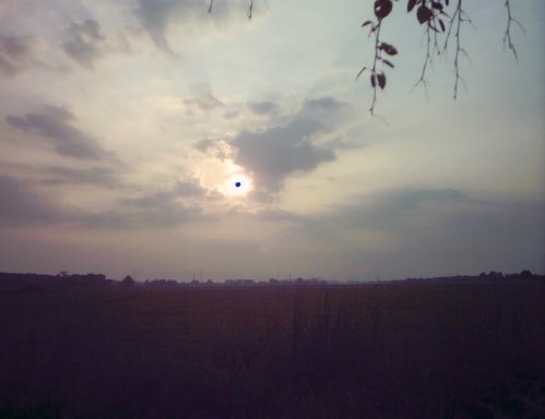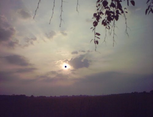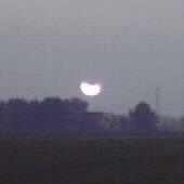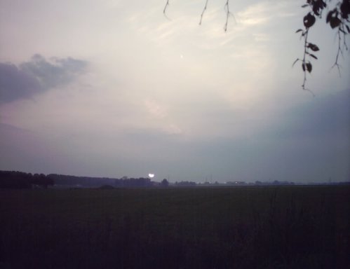 Take two: 6th May 2003 saw a new eclipse in the Netherlands. A partial eclipse, but still. The sun would rise with a moon blocking its top, making it the lying crescent of a cow's horns (hence, a "horned" sun) and as their paths diverged, become a vertical crescent, the morning sky darkening as more of it was obscured, and then free itself altogether. So I took a day off from work and got up very early to stand in the wet grass with a cheap digital camera seeing what I could get. A problem being that the camera lens was far more sensitive to light than I was, so that the photos were very different from what I saw.