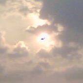 Complaining to a colleague about having missed the lunar eclipse of 4th May 2004 due to heavy cloud cover, I heard he had seen the solar eclipse of 1999, which I'd also missed through heavy cloud cover and stupidly having travelled to the country where this cloud cover was a problem; I should have stayed in Belgium. It seems everyone saw the eclipse except me. The story of my failed expedition can be found here. Below are the photos that came closest to showing an eclipse in progress: