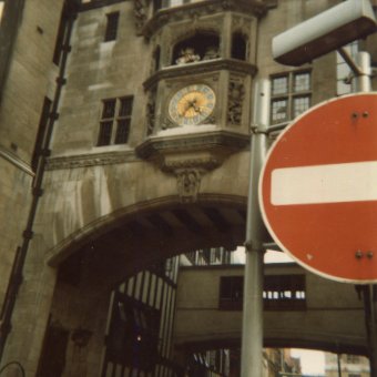Alas, that second roll of film came too late for the ruins; but not too late for other imposing constructions in sandstone colours. The third picture is a good example of the limitations of image digitalization (unless one uses more expensive equipment than I can afford); on the original, the Roman numerals were clearly distinguishable on the clock face.