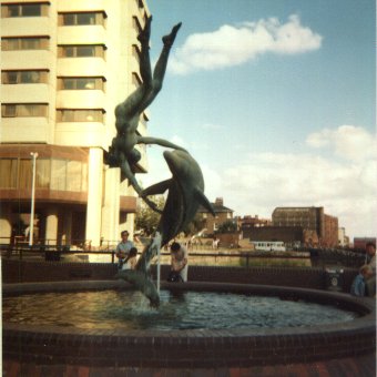 Speaking of imposing constructions; I circled round this public fountain several times for a photographic angle that would do justice to both elements of this seemingly precariously balanced statue. The second picture is simply your average quaint harbour with pretty cloud-filled sky.