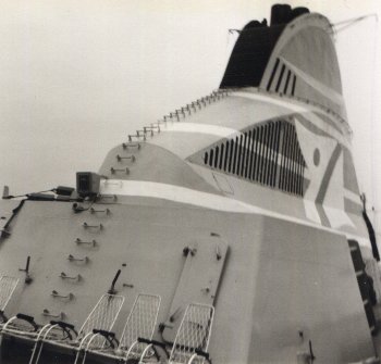 The imposed lack of colour was even more frustrating when trying to capture the grandeur of Scandinavia. These are the bare, craggy shorelines that welcomed us on the passage to Norway, with bits of boat for those who like cogs and wheels. The deckchairs against the ferry's central structure look superlatively uncomfortable.