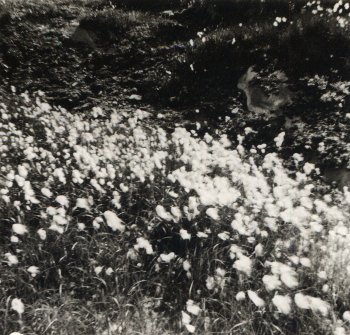 Only my memory supplies the additional information that this landscape is mostly green, with streaks of orange and yellow fading into it, and much grey-yellow accents from the be-lichened rocks sticking up through the grass.