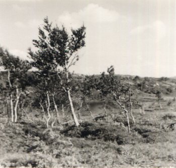 For lack of colour, these snapshots concentrate on structure: the stunted trees that survive on this poor soil, the cracks and ridges of a rock face, the profusion of leaves overhanging a big, round, moss-covered boulder that I accidentally de-mossed by climbing on top of it, and then slipping.
