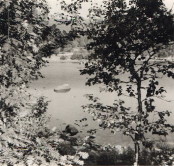 A rock in the water, seen through the trees, and from the river's edge. I fell deeply in love with this rock and dreamed of living near it and making it my personal haunt, but this was at a camping, and I doubt the owners would have approved my moving in on their property and chasing away the tourists.