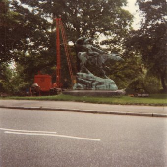 From the fjords to Copenhagen: an aged bronze statue which looks as if it's about to be overturned by machinery, but that's just visual coincidence, and a well-trodden path leading to a saint's statue.