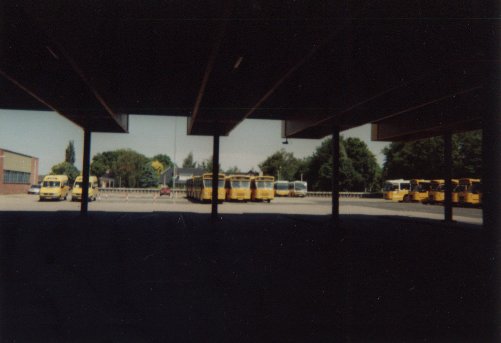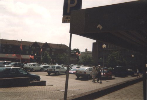 Looking out from the bus lanes at the bus station. The little vans to the left are the neighbourhood buses manned by volunteers, which means that they're not completely reliable. In pre-bicycle times, one of these volunteers personally drove me to Overschild in his own car after another failed to turn up due to illness, and of course no replacement had been arranged.