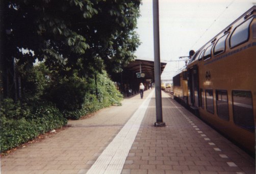 Geldermalsen is at the far end of the bit o' rail running from Dordrecht to Geldermalsen, and of the one running from Utrecht to Geldermalsen; therefore, I frequently changed trains there, both to go to work and for the weekend journeys to Groningen. I believe the village lies in Gelderland, a province thought of as lush and rural. The gardens of the houses near the station, as well as the planted rectangle on the station platform itself, certainly qualify as lush. This is probably the kind of place people move to when their incomes are high enough to move to the countryside, but they don't want to live too far away from work. Despite the suggestion of life being good in Geldermalsen, the station is a bit unpleasant, attracting adolescent riffraff of the kind too often found in suburbs.