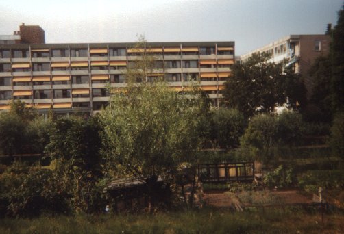 A very different sight: what one could call the cheap-high-buildings zone. This is Stadspolders, a suburb large enough to have its own train station. The second picture shows a playfully shaped area of water which, one can tell when one comes closer, is chiefly used by people to chuck their junk in.