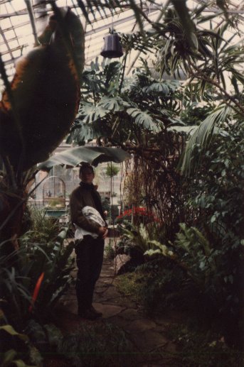 There's nothing strange about the tropical foliage here, considering I'm standing in a greenhouse deliberately constructed to house such plants. The strange element is, again, to the left: a birdcage, probably empty. What on earth is a birdcage doing in the hothouse?