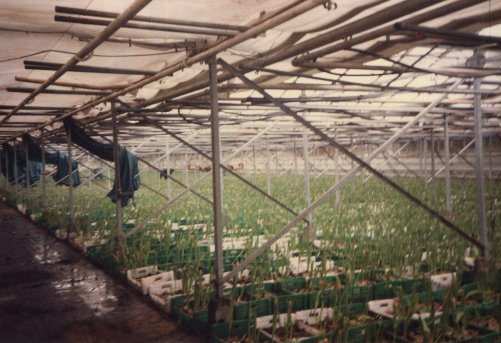 "What in earth is X doing in Y" is also the idea behind this tulip-growing hothouse. In the grimy little room where the workers have their coffee break: not a TV, but a home computer. Like the boss's mobile phone and other electronic appliances, it died of dust.