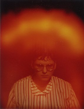 These are not slightly strange, but strange. Misleadingly called "aura photographs", they are in fact a measurement of the electronic resistance in my hands translated into a pseudo-halo around my head. When the first pic was taken, I was tired and depressed, and it shows; for the second, I was wearing something that changed my body's electrical field and had also taken my coat off, which means that my body temperature had risen, and that shows, too. That's how easy it is to change your "aura". A joke being that the colours produced on the photograph are equated with a person's character, and red means energetic, forceful and aggressive. Yeah, right!