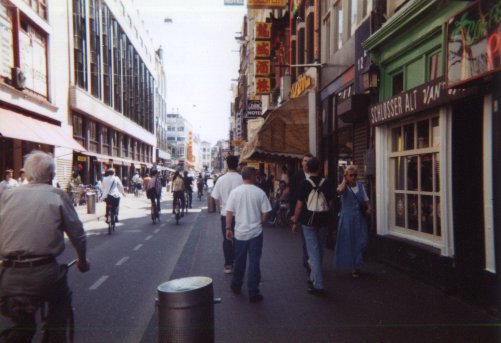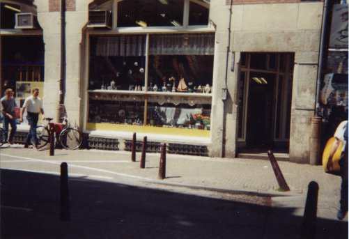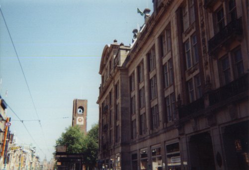 Amsterdam's main square, "de Dam", with some buildings that are imposing indeed; notably "de Bijenkorf", the Dutch equivalent of Harrods. Dutch hippies used to gather for mass protests here, and the police would spray them off with a very large hose - all long before my time, of course. The last picture shows one of the entries into the maze of streets behind the Dam, where one can find bookshops, porn/pot shops, chicken tikka sandwich shops and fashion shops all jumbled together. Somewhere here is a New Age shop I used to visit and a condom shop called the "Gulden Vlies" which is a translation of the famous Golden Fleece of Greek mythology, but also a pun because "vlies" doesn't mean fleece in the sense of pelt, but is a thin covering or skin. Their shop sign showed two pseudo-Grecian silhouettes chasing each other, one of them waving a condom. Always good for a smile.
