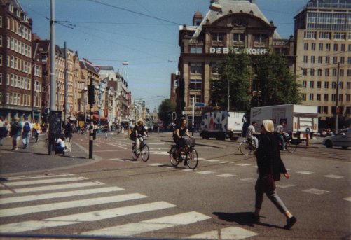 Still in the centre, but on the outskirts of Amsterdam's famous waterways: Leidseplein, where one can catch trams and buses to all parts of Amsterdam and beyond. The location of Paradiso, which used to be some hippie commune and is now the place to watch concerts by Mano Negra, the Red Hot Chili Peppers and all those other bands I didn't see.