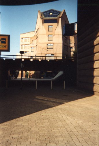 Having emphasized what an architectural nightmare the Bijlmer is - as a child I was taken there for visits to a grandmother, another one of those social categories easily relegated to the slum - I've photographed only the area of it that is quite bearable, and that, unsurprisingly, surrounds a train station. Architects have learned, and made a pleasant little three-storey apartment block close to "station Bijlmer" that is relatively safe to live in and close to the only non-gloomy shopping centre in the area, which also boasts that architectural achievement, the "ING-gebouw"; the bank called ING has buildings all over Amsterdam, but this one was deliberately designed to be aesthetically pleasing both inside and out, to, as it were, invite the employee to work. I've only seen the outside, but it is something special.
